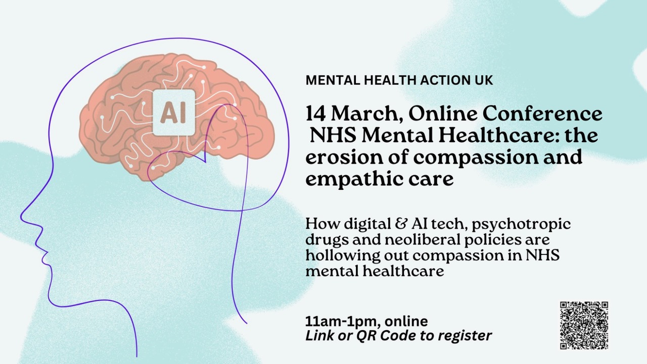 Register via Eventbrite link here: https://www.eventbrite.co.uk/e/nhs-mental-healthcare-the-erosion-of-compassion-and-empathic-care-tickets-1982678253027?aff=oddtdtcreator